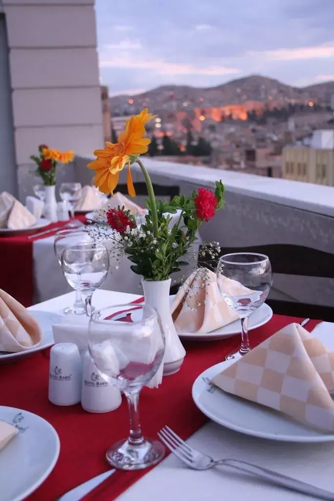 300 kişilik Restoranı, 50 kişilik teras restoranımızda açık büfe kahvaltı, brunch, öğle ve akşam yemekleri için dünya mutfağı ve Şanlıurfa’nın yöresel lezzetlerinden menüler sunulmaktadır.